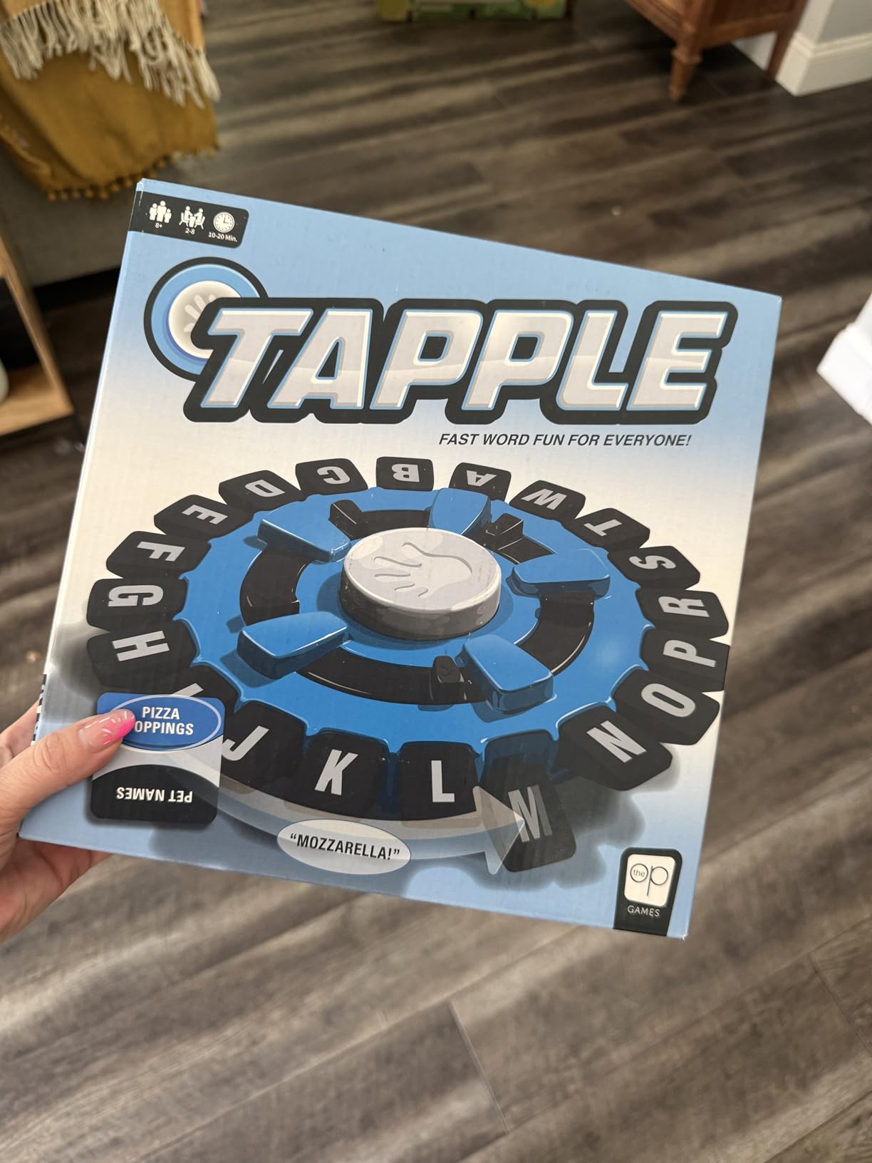 Tapple is a fast-paced and engaging word and category board game that is perfect for any game night. It is easy to learn but provides hours of fun and challenges players to think quickly on their feet. The unique twist of the timer and letter elimination adds an element of excitement that keeps everyone on their toes. I highly recommend Tapple for anyone looking for a lively and entertaining game to play with friends and family.