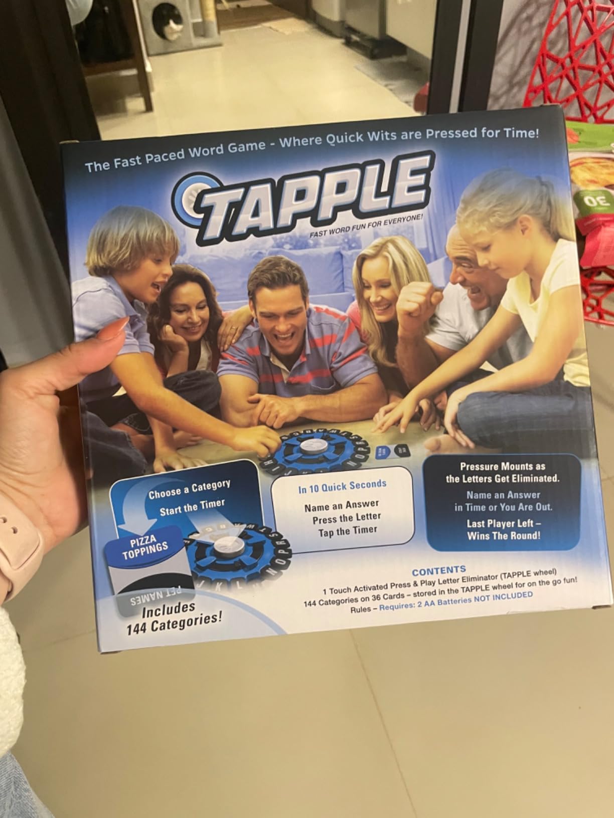Tapple is a fast-paced and engaging word and category board game that is perfect for a fun game night with friends or family. The game is easy to learn but challenging enough to keep you entertained for hours. The timer adds an element of excitement and urgency, making each round fast-paced and competitive. I love how Tapple brings out everyone's creativity and quick thinking as you try to come up with words that fit the given category before the timer runs out. It's a must-have game for anyone who enjoys word games and is looking for a new favorite to add to their collection.